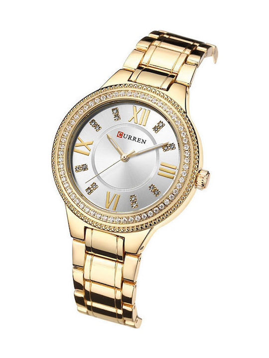 Curren 9102 Γυναικείο Ρολόι με Δίχρωμο Μεταλλικό Μπρασελέ & Μαύρο Καντράν
