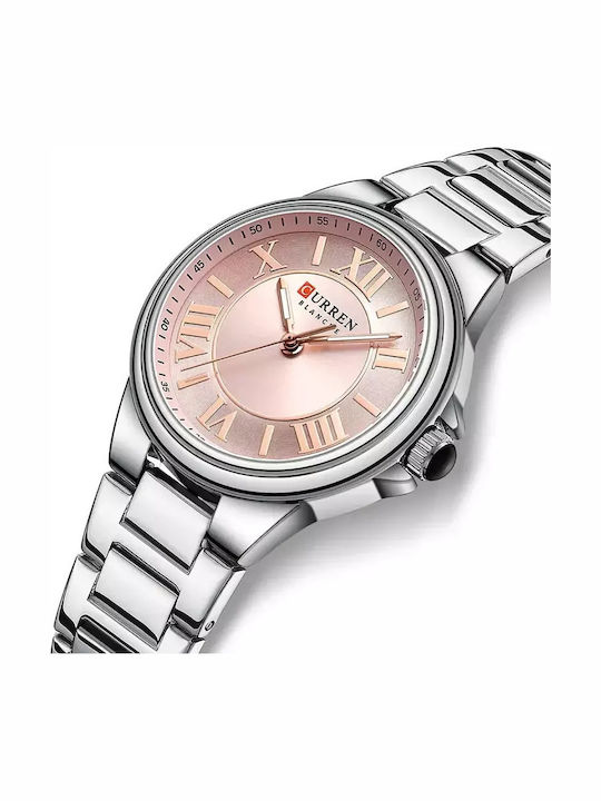 Curren 9110 Γυναικείο Ρολόι με Ασημί Μπρασελέ & Χρυσό Καντράν αποτελεί μια κομψή επιλογή για καθημερινή χρήση, με minimal σχεδιασμό και μεταλλική κατασκευή που ταιριάζει σε κάθε εμφάνιση.