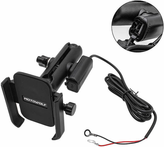 Motowolf MDL2821B Βάση Κινητού Μοτοσυκλέτας για Καθρέφτη με Φόρτιση USB 12V 3.5-6.5″ με σταθερή στήριξη, 360° περιστροφή και ενσωματωμένη παροχή ρεύματος για φόρτιση κινητού κατά την οδήγηση. Ιδανική για καθημερινή χρήση και ταξίδια με μέγιστη ασφάλεια.