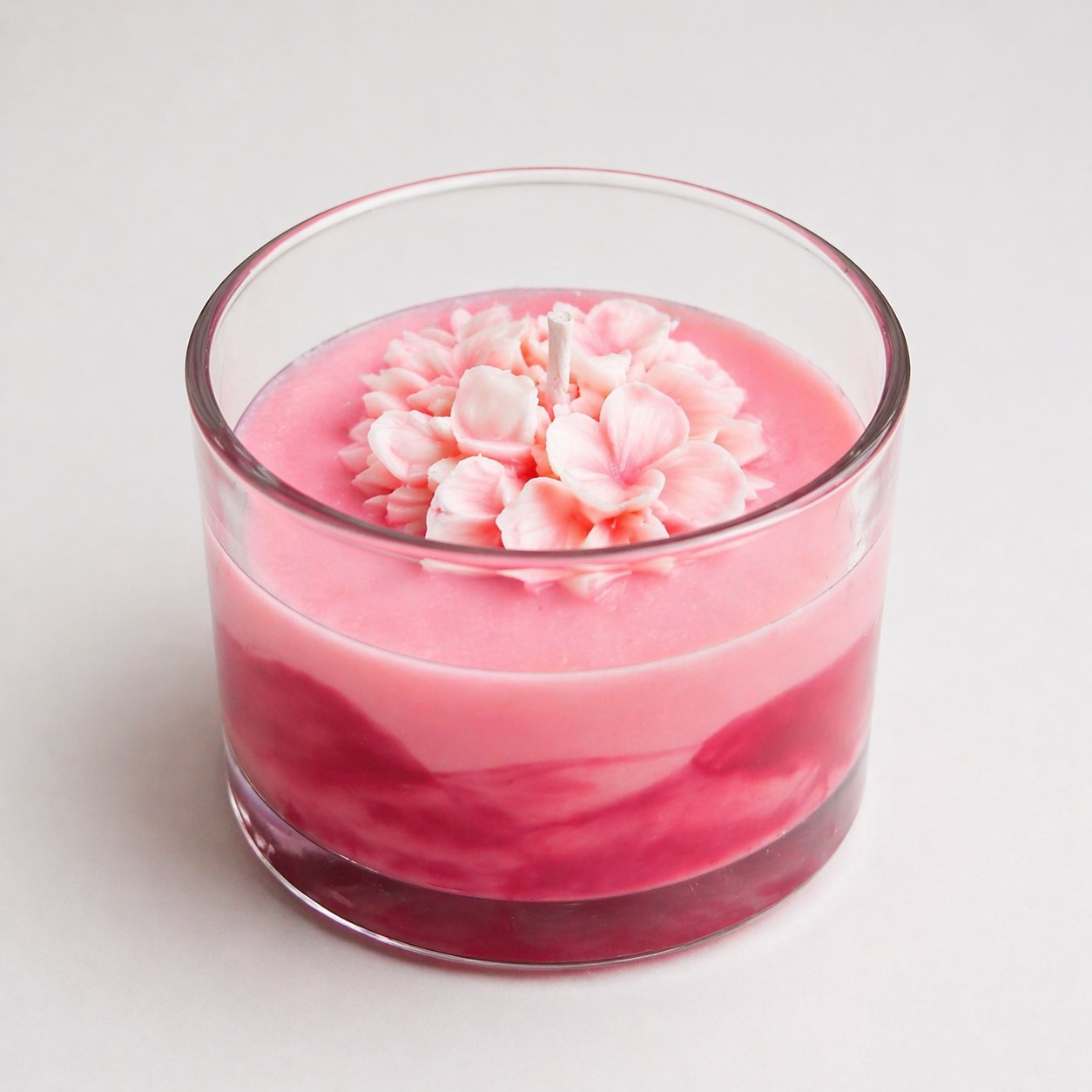 Η χειροποίητη κατασκευή του προσδίδει μοναδικό χαρακτήρα, ενώ η διακοσμητική επιφάνεια σε σχήμα λουλουδιού το κάνει να ξεχωρίζει οπτικά. Το γυάλινο δοχείο ενισχύει την κομψότητα και επιτρέπει να ταιριάξει εύκολα σε κάθε χώρο, είτε πρόκειται για σαλόνι είτε για υπνοδωμάτιο.